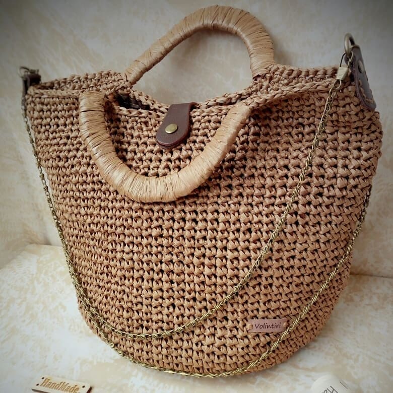 De Alta Calidad De Ganchillo Rafia Paja Bolsa Con Asa De Cuero